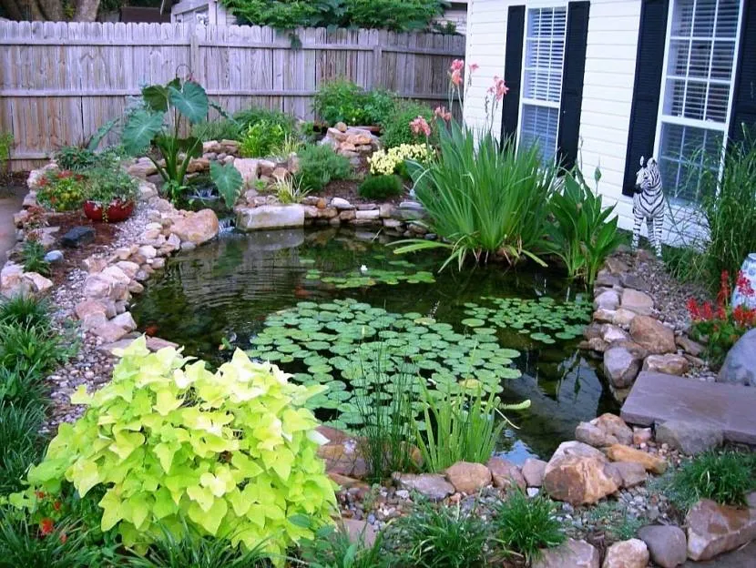 Искусственный, даже небольшой, прудик может создать уютную и комфортную для отдыха атмосферу. Растения вокруг кажутся зеленее, свежее. Такой уголок природы окажет успокаивающее действие.