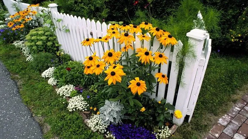 Палисадник в деревенском стиле. Оформляется достаточно небрежно, высаживают неприхотливые растения, чаще всего многолетние, используется плетеная изгородь или штакетник.