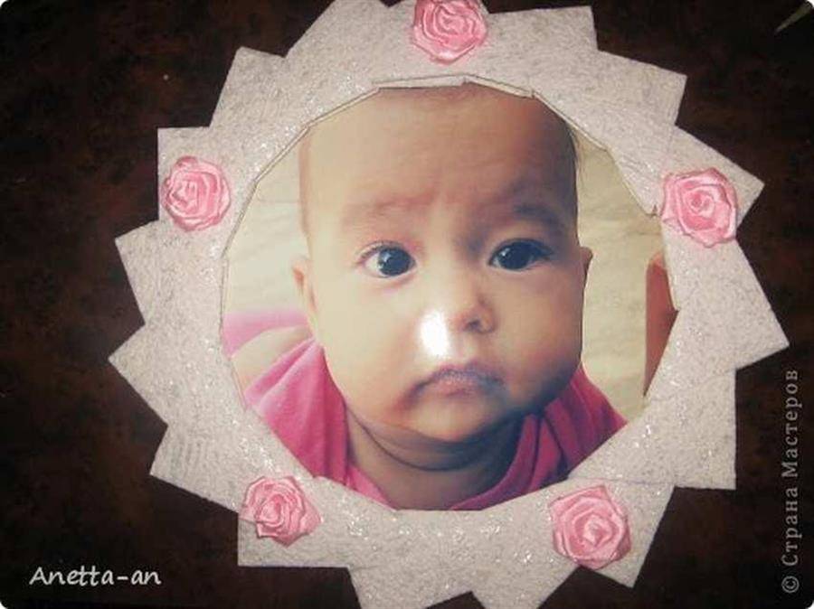 Портретам подойдут строгие рамы из дерева или торжественные из потолочных плинтусов ПВХ. Детские фото сочетаются с мягкими аппликациями.