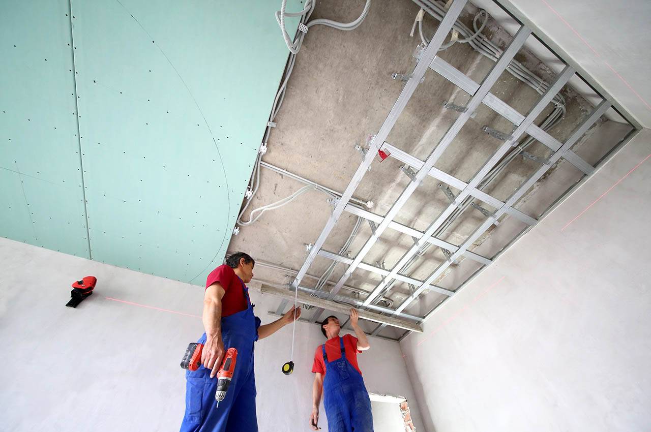 - Проверьте плоскость и уровень потолочного перекрытия. Очень часто они далеки от идеала.