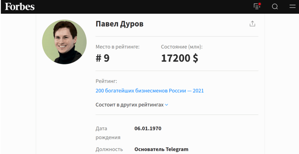 - основатель и владелец мессенджера «Телеграм»(Telegram).