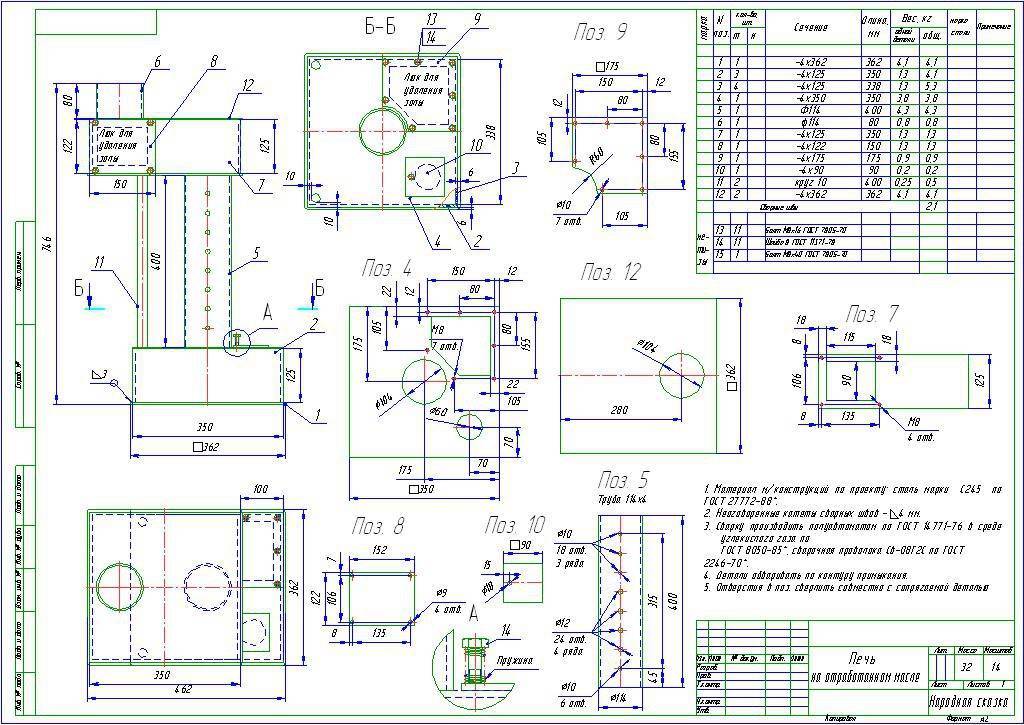 Изготовление котлов нужно начинать с точных расчетов технических параметров, необходимых размеров и используемых материалов. Чтобы котел работал эффективно и с максимальной отдачей, его изготовление своими руками должно быть выполнено только после того, как будут готовы все необходимые чертежи с указанием точных размеров и параметров всех элементов.