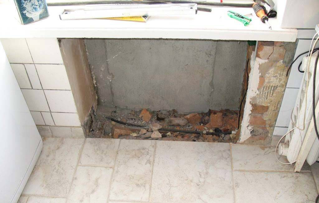 Если по каким-то причинам владелец квартиры решил демонтировать холодильник под окном, то его лучше заложить пеноблоком или кирпичом. В кирпиче устанавливаются кронштейны для радиатора. Если углубление глубокое, то свободное место между перегородками засыпают шлаком. Место под подоконником заполняют монтажной пеной. После демонтажа холодильника батарею возвращают на старое место, чтобы увеличить ее эффективность. Полная заделка ниши решает все серьезные проблемы с утечкой тепла через тонкую стенку и деревянные дверцы. Поэтому жителям северных областей этот вариант покажется наиболее рациональным.