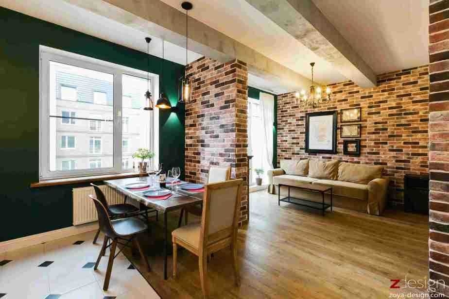Выбирая такой способ, учитывают функцию каждой зоны. Например, при разделении кухни и спальни спальную зону оформляют в более глубоких, спокойных тонах, а зону кухни делают более выразительной, яркой