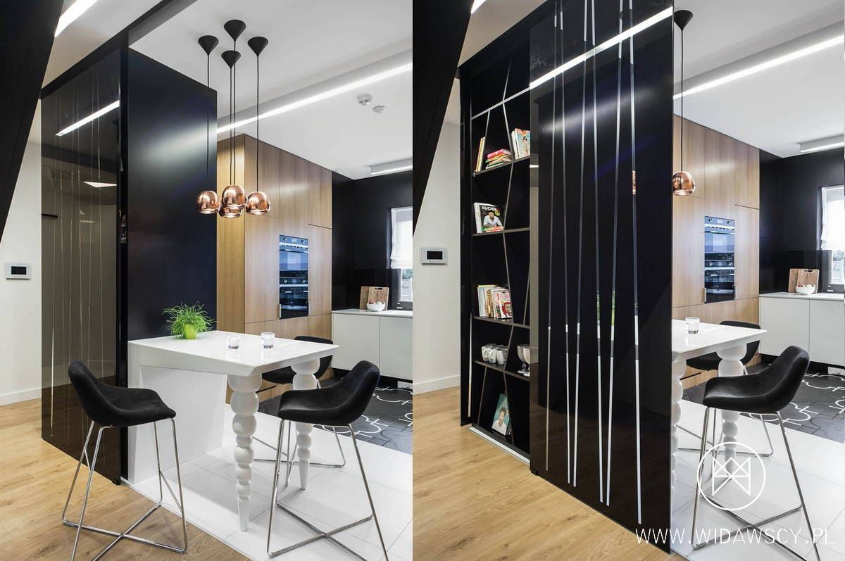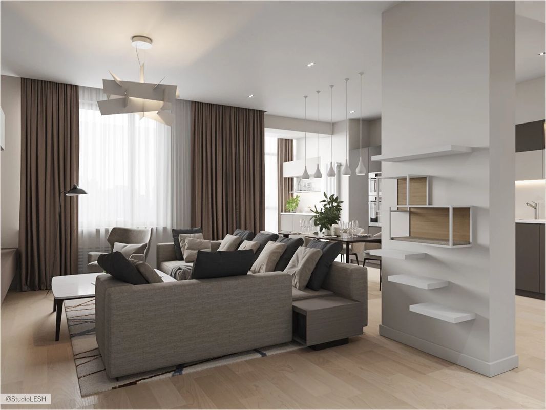 Две зонирующие перегородки между гостиной и кухней