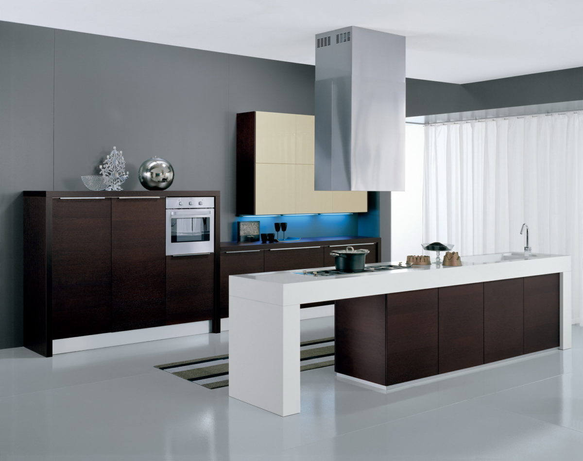 По центру кухни можно разместить функциональный остров, если позволяет ширина комнаты