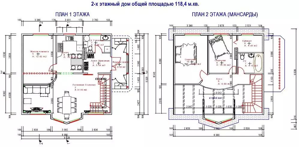 Примеры планировки домов и коттеджей с двумя этажами и совмещенными комнатами: