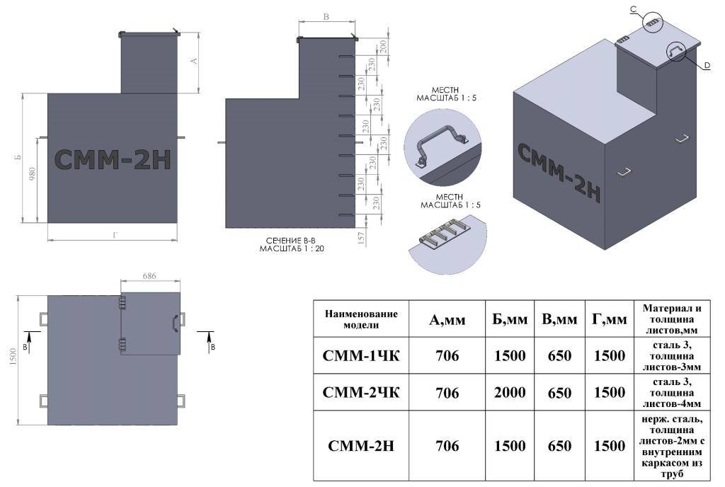Стандартные габариты кессонов различных типов