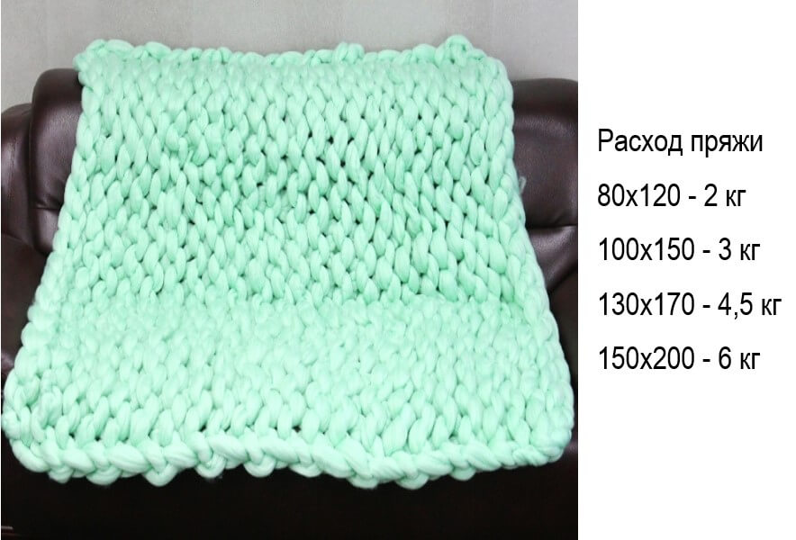 Толстая пряжа стоит дорого, поэтому не правильный расчет количества приведет к лишним тратам или ее не хватит. Остаток можно будет использовать в других работах. Дополнительно покупают нити только из той партии, что купили ранее, чтобы они не отличались по цвету. Количество зависит от плотности и техники вязания, выбранного узора, толщины нитей и инструмента.