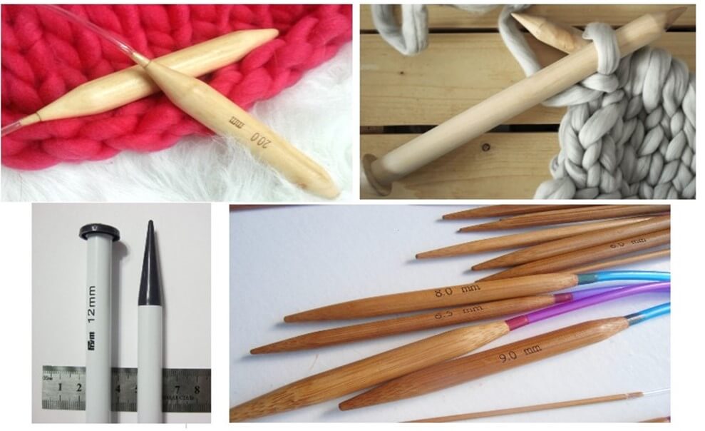 Для толстой пряжи нужны прочные спицы со специальными ограничителями на концах, чтобы не соскальзывали петли. Подойдут металлические, пластиковые или деревянные.