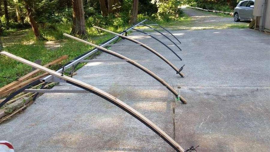 - Собрать дугообразный каркас из металлических, пластиковых труб или профиля. Все крепления также делают с помощью саморезов и шуруповерта.
