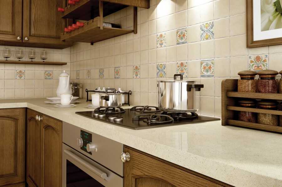 Плитка для кухни также обязана быть и износоустойчивой, чтобы со временем она не теряла своих характеристик и цвета.