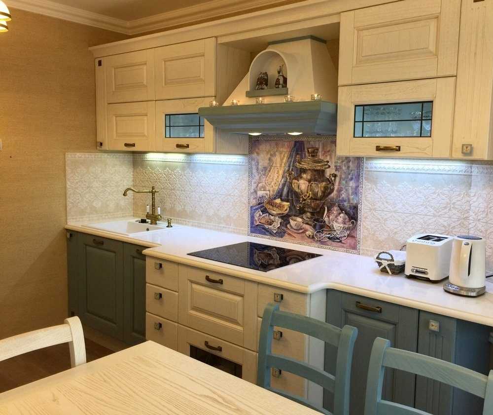 Идея! Универсальные картины из керамики на светлом фоне одинаково хороши в союзе с выбеленной мебелью, свойственной прованской, винтажной и классической эстетике, а также глянцевыми гарнитурами черных и броских тонов, встречаемых в кухнях с чертами модерна и хай-тека.