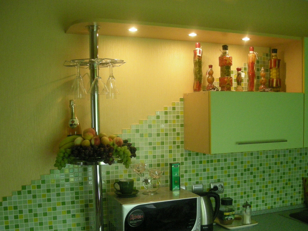 Необычный вариант мозаичного панно на фартуке кантри-кухни