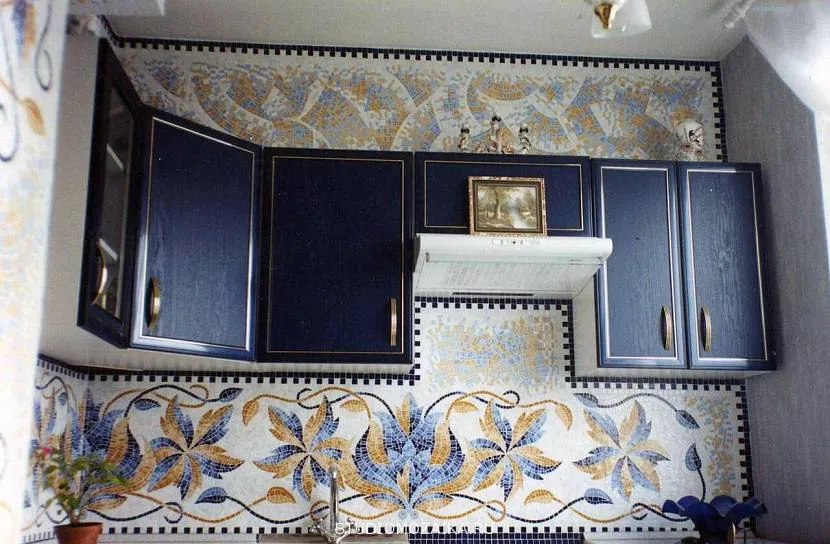 Уникальное авторское оформление фартука кухни: панно из осколков плитки