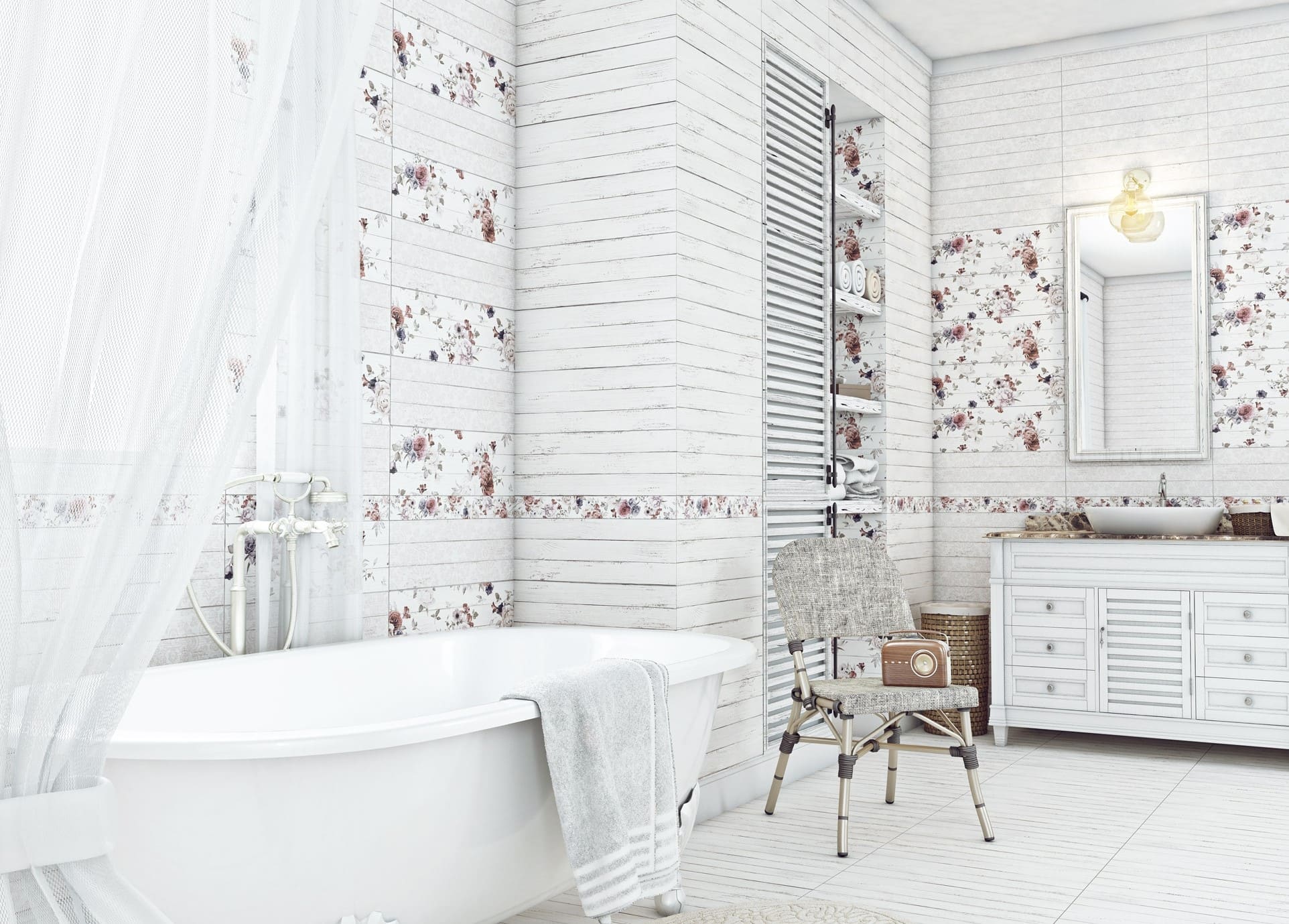 - Если вы выполните отделку только узорчатой плиткой, она будет раздражать, поэтому нужно комбинировать ее с однотонной: ориентировочное соотношение – 30% фактурной, 70% гладкой;