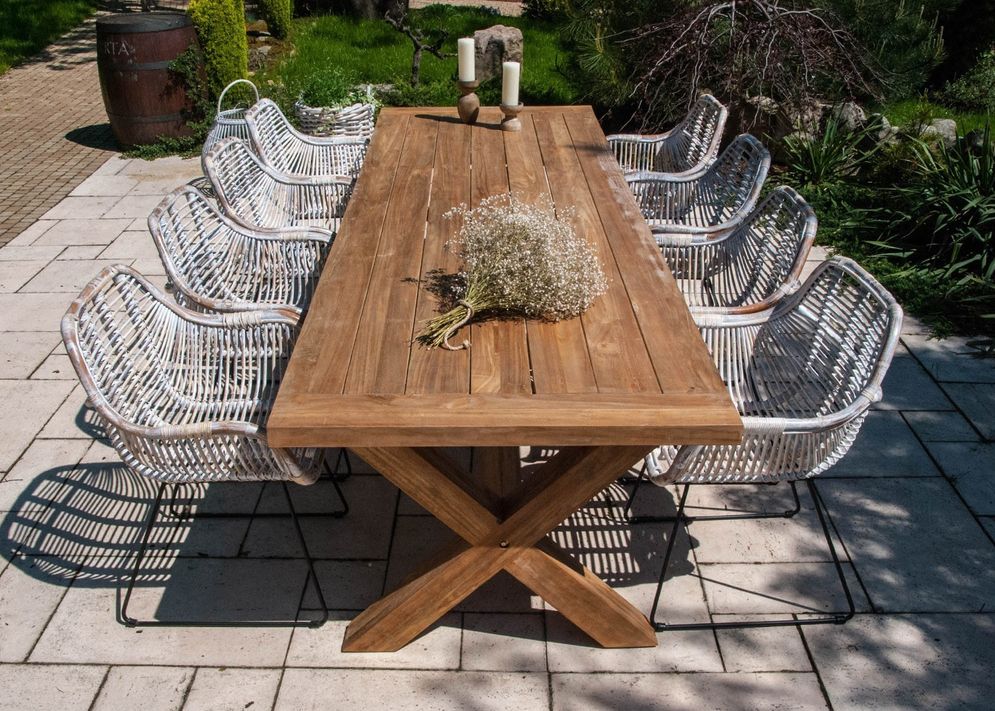 Важным элементом в саду является стол, особенно если вы любите есть на свежем воздухе и устраивать вечеринки. Большинство предлагаемых на рынке столов изготавливаются полностью из дерева или в сочетании с металлом. Также доступны пластиковые модели. Ключевой вопрос — это размер садового стола. Слишком большой будет загромождать пространство, поэтому стоит поискать раскладной садовый столик. Помните, что лучше всего ставить его на мощеную поверхность. Кроме того, вокруг него должно быть достаточно места, чтобы можно было удобно расположиться на стуле.
