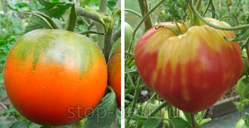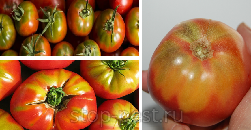 Почему томат краснеет с зелеными пятнами около плодоножки