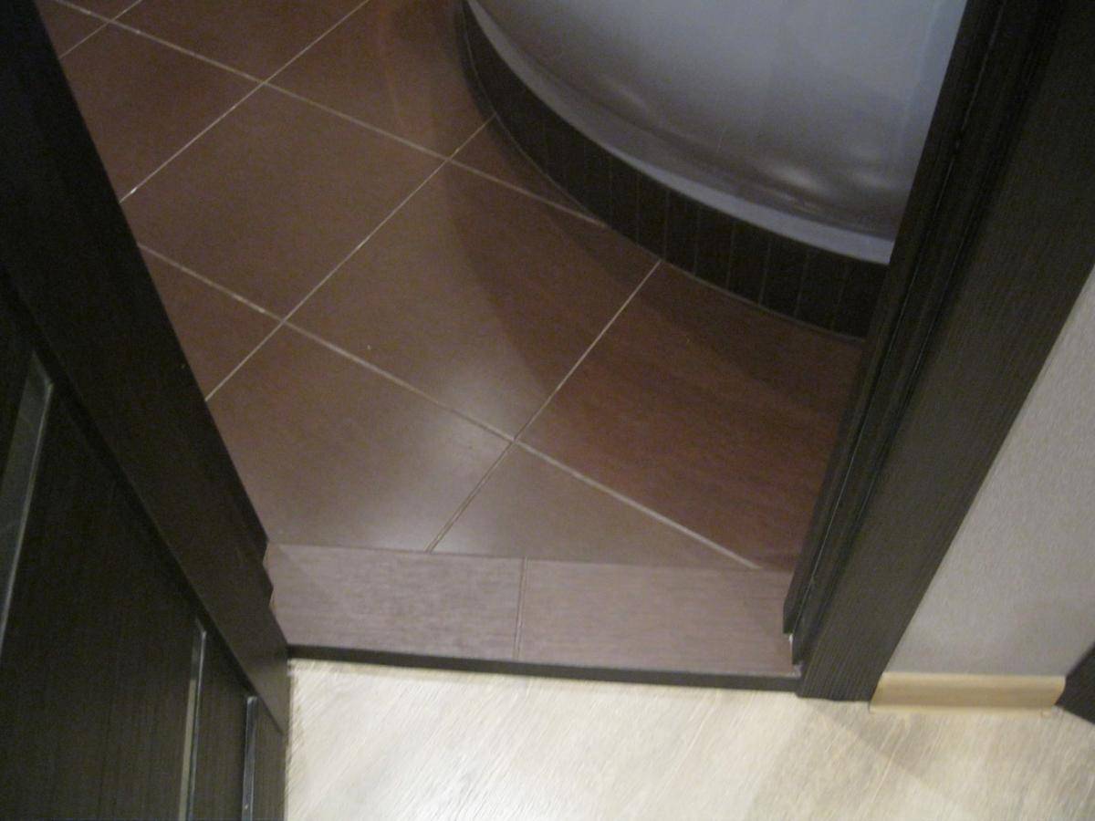 Ниже становится пол ванной. Выглядит как маленькая ступенька в помещение с санузлом;