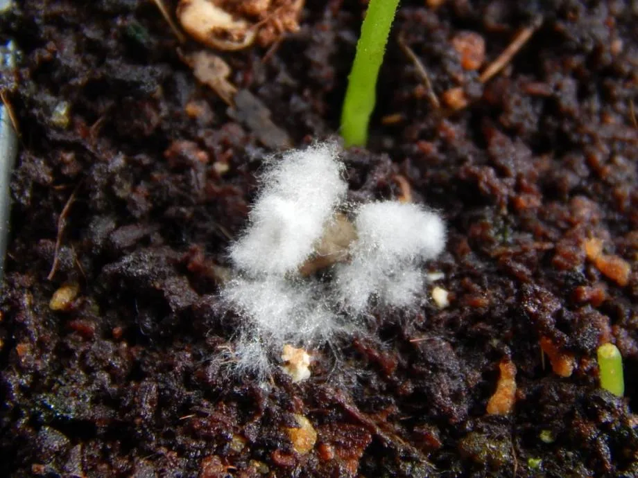 Белая плесень чаще всего не опасна, но в почве могут быть споры и болезнетворных грибков. Чтобы защитить рассаду от болезней, ее можно обработать фунгицидами.