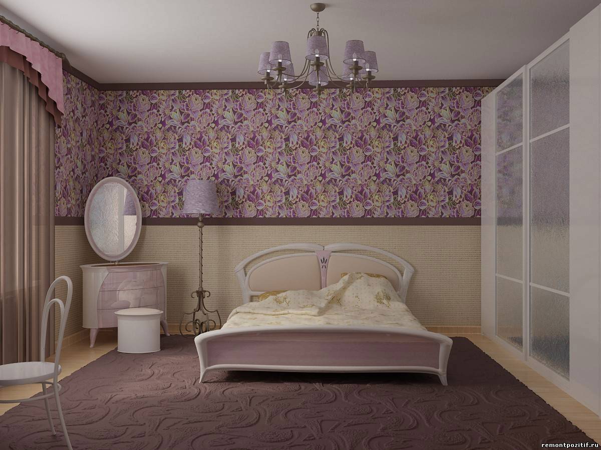 Способствовать расслаблению будут такие оттенки, как голубой, синий, серый, светло-фиолетовый. Воздушность и гармонию подчеркнут обои с переливами в розовом, бежевом, голубом, песочном цвете.