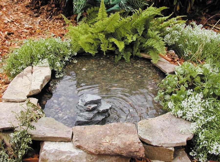 Ободки шин сверху лучше замаскировать разными по размеру камешками. Прекрасно подойдет галька. Рядом с образовавшимся водоемом высаживаются растения, «обожающие» влагу. Примените свою фантазию для декора пруда и исполните ее на практике. В заключении пруд наполняется водой.