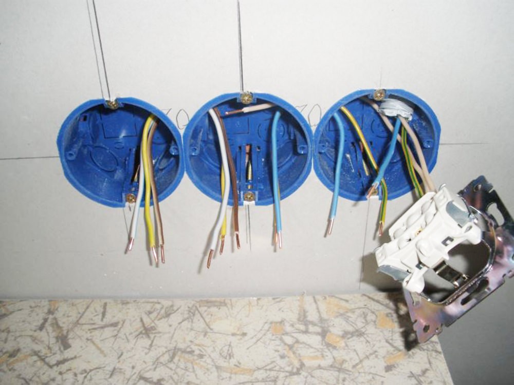 После закрепления листов гипсокартона приходит время выполнения следующего этапа работ, относящегося к электрификационной части, — установке в стенах розеток и выключателей.