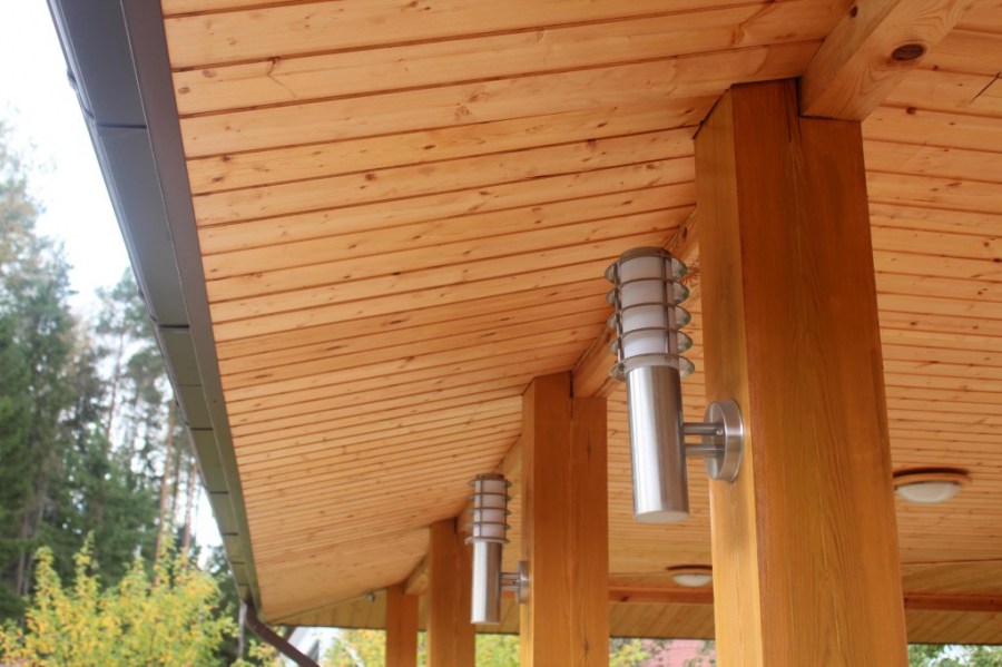 Этот материал хорош тем, что уже обработан (в отличие от досок), поэтому и пользуется большим спросом. Для обшивки свеса необходимо брать влагостойкую вагонку, предназначенную для работы в данных условиях. Как и доску, этот материал тоже надо перед монтажом месяц подержать на открытом воздухе. Способы монтажа такие же, как и для доски, только щели оставлять не нужно. Вместо этого используют готовые решетки для вентиляции, на расстоянии друг от друга 1,5 метра.