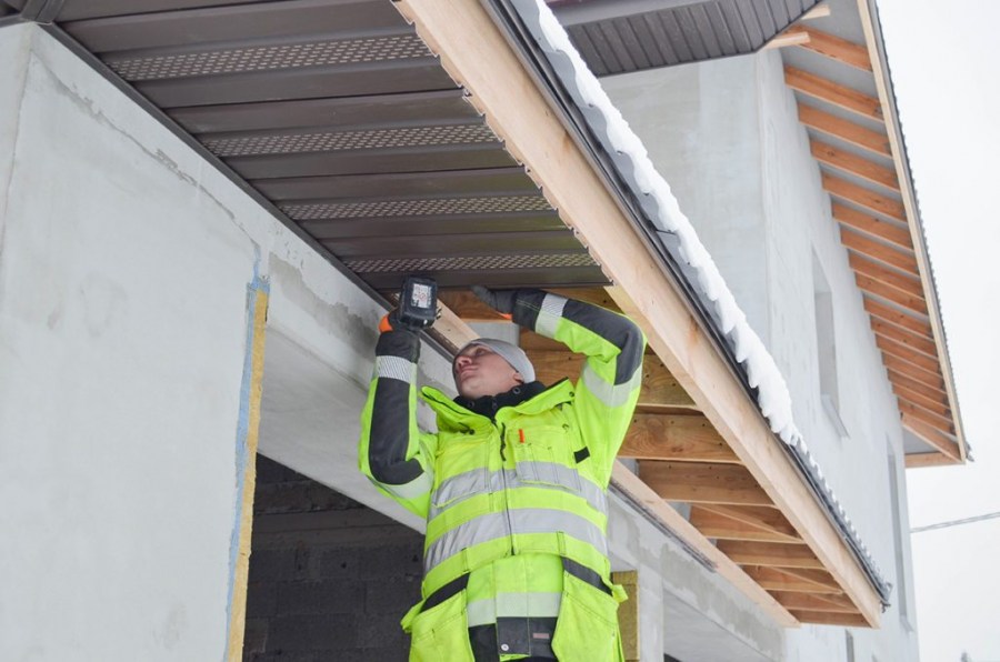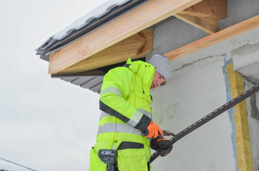 Подшивку выполняем после установки водостоков, по окончанию оформления, утепления внешних стен;