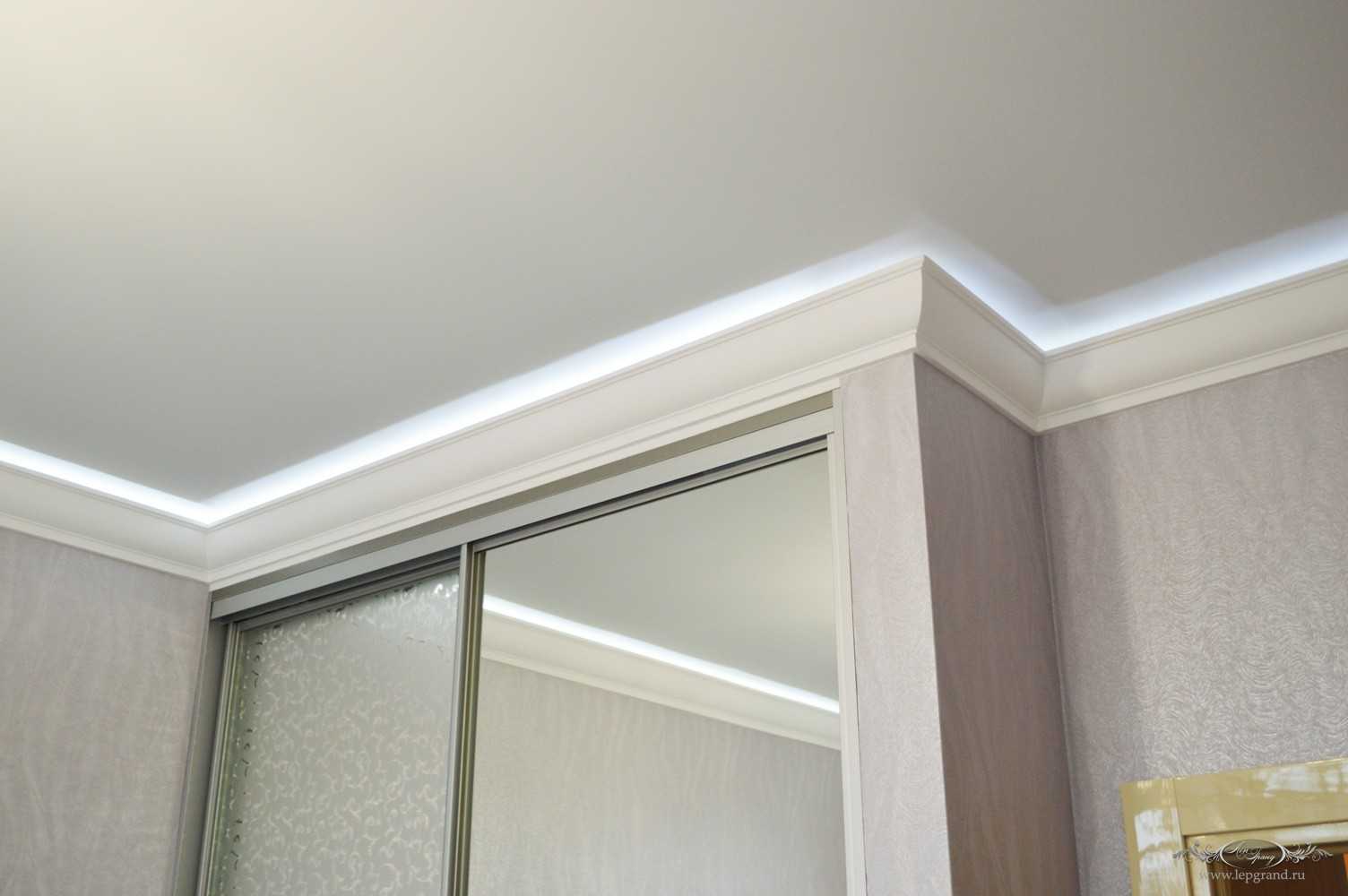 - Дополнительные элементы и непосредственно потолочные плинтусы должны иметь соответствующую форму, которая позволит установить элементы для контурного освещения.