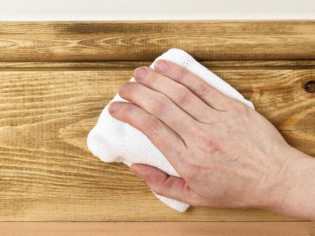 - Чистую поверхность стула или комода протрите от пыли несколько раз влажной тканью и оставьте до высыхания.