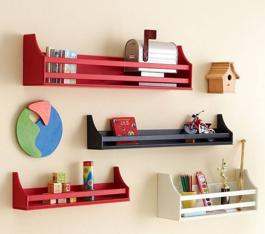 Навесные полки и стеллажи в детской комнате никогда не будут пустовать