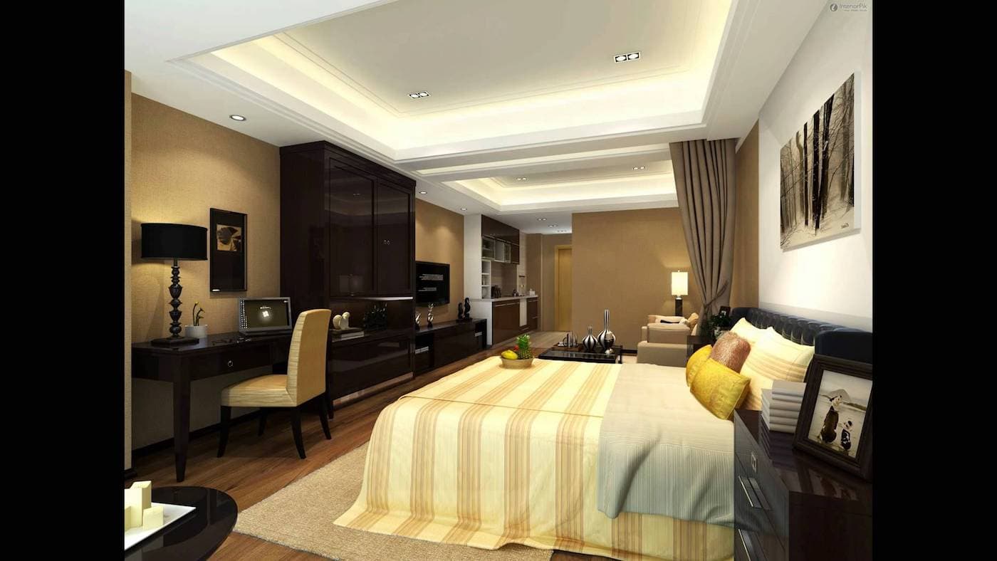Красивое решение для спальни – многоярусный гипсокартонный потолок с плавными переходами цветов. Выбирайте мягкий градиент или, как тут, воспользуйтесь классическим сочетанием бежевого и белого. В качестве источника освещения отдайте предпочтение люстре или дополните ее точечными светильниками, если комната достаточно большая.