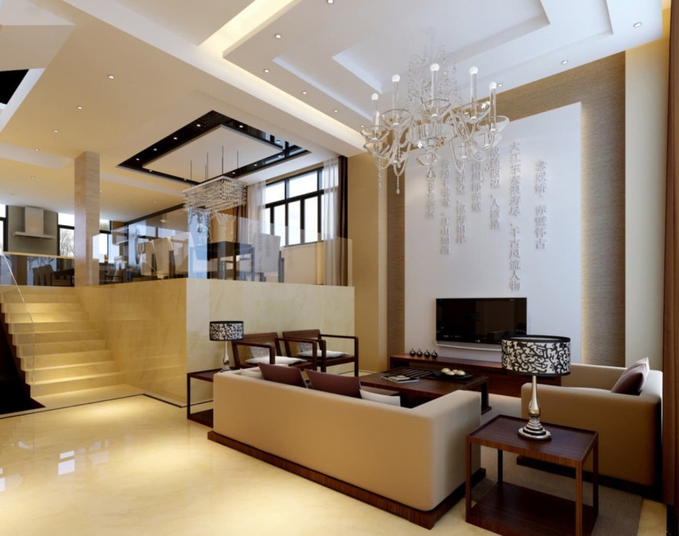 Эта комната обычно самая большая в доме, и здесь самое подходящее место для объемных потолков, необычного декора и разнопланового освещения. В гостиной нередко используется прием оформления различных зон фигурными элементами. Чаще всего выделяют пространство камина, телевизора, большого дивана, обеденного стола. Если вы планируете устроить многоуровневый потолок в небольшой гостиной, от большой сложной люстры стоит отказаться в пользу аккуратного плафона.