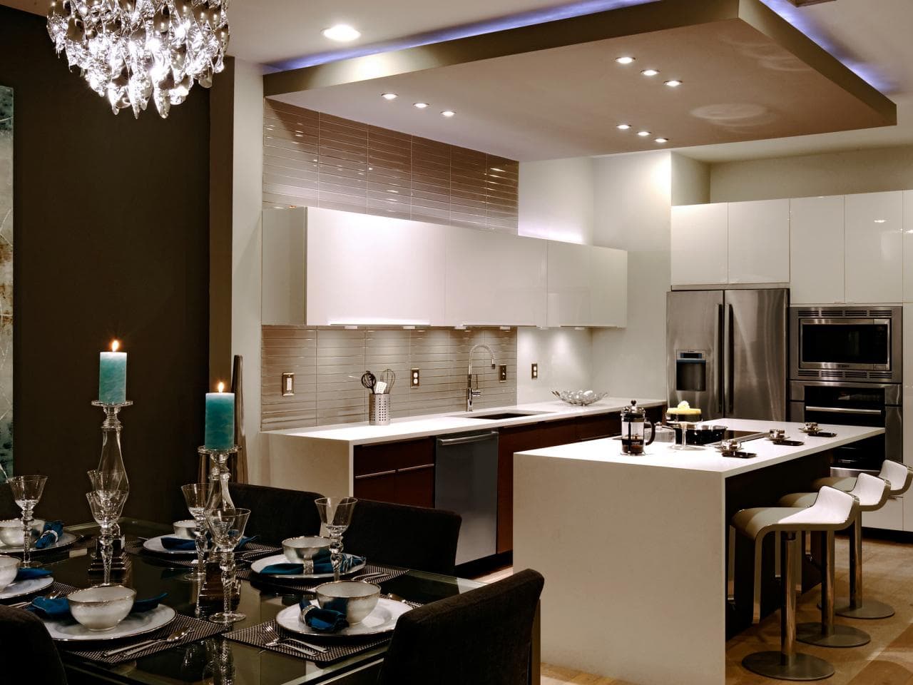 Дизайнерские потолки, выполненные из гипсокартона, не только кардинально преображают , но хороши и с практической точки зрения. Гипсокартон обладает большой влагостойкостью, прекрасной звукоизоляцией и огнеупорной защитой, которые обеспечат вам красоту и удачную эксплуатацию кухни на долгие годы.