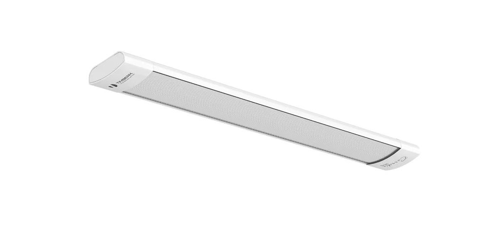 Инфракрасный обогреватель Ballu занимает второе место рейтинга. Эта модель самая компактная и тонкая в рейтинге (толщина 4 см) за счёт уникальной разработки производителя. Корпус и основные элементы обогревателя выполнены из нержавеющей стали. Стенки анодированы, что обеспечивает долгий срок службы и защищает от повреждений. Они имеют увеличенный угол наклона, за счёт чего корпус визуально кажется ещё более тонким. Крепить обогреватель можно на стенку или потолок (до 3,5 м).