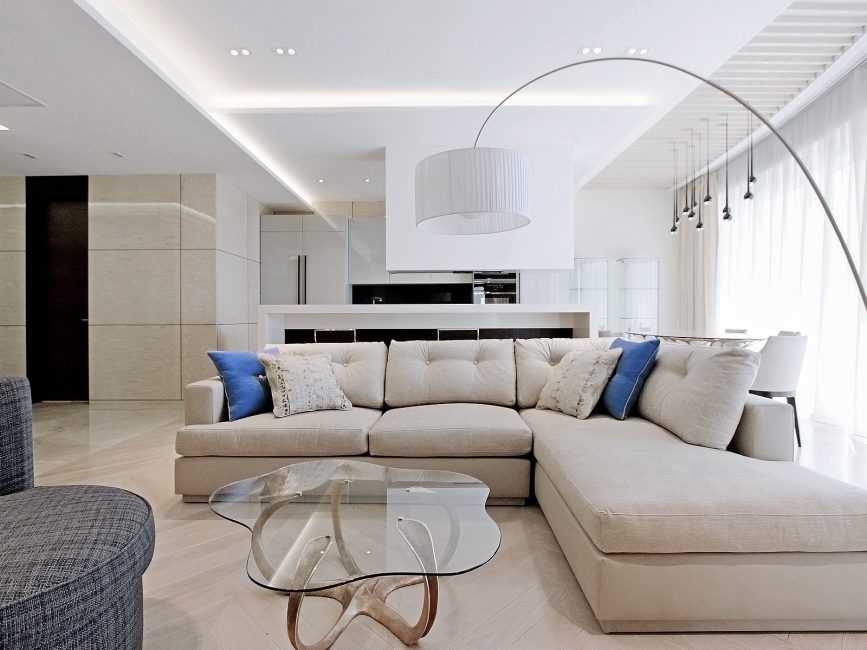 Несколько уровней потолка, придают помещению ощущение большей высоты, чем есть на самом деле.