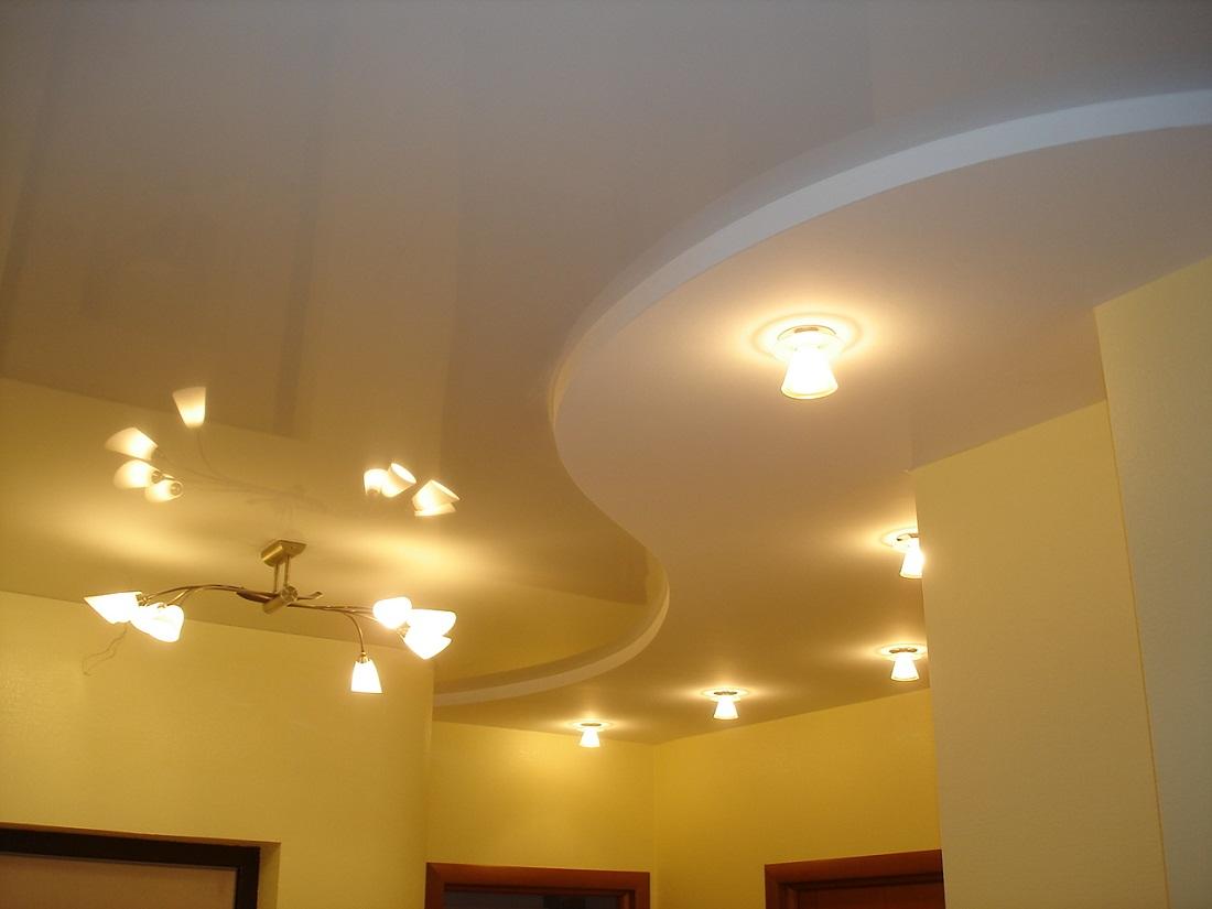В оформление потолка из данного материала великолепно впишутся разнообразные светильники, которые придадут комнате уникальный дизайн. К тому же с помощью светильников можно без труда регулировать интенсивность света. Это могут быть, например: