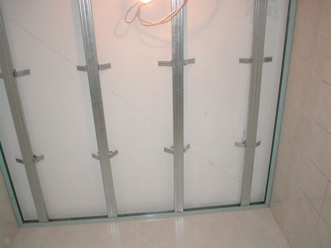 Установка каркаса под потолок ГКЛ в ванной комнате