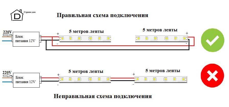 Также нужно правильно посчитать общую мощность всего отрезка ленты. Подсчитав метраж ленты, получившееся число умножают на мощность в 1 м. Итоговый результат определит мощность требуемого контроллера для ленты.