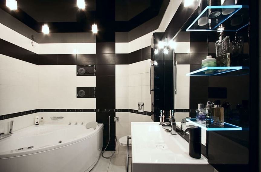Потолок в ванной — отделка ПВХ панелями в интерьере
