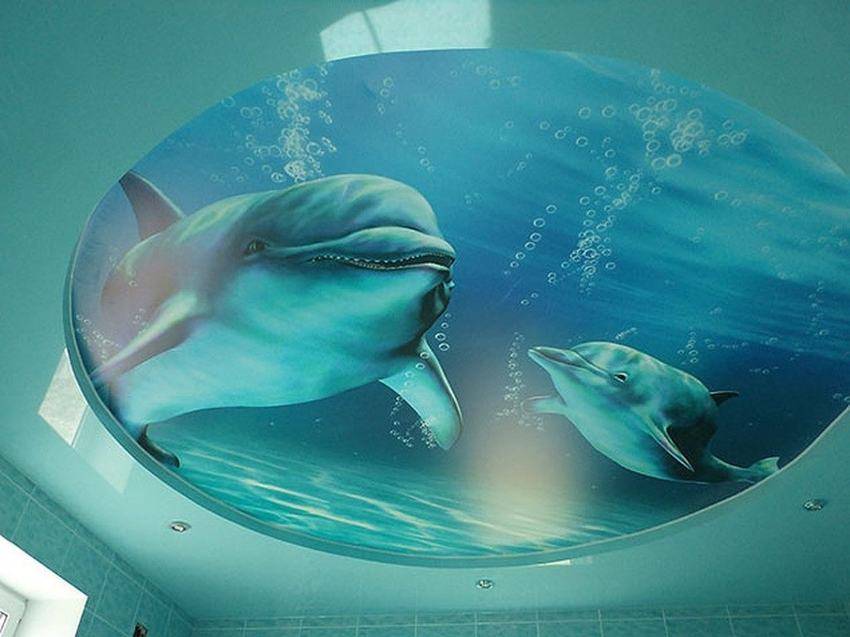 - Отличается изобилием расцветок, фактур, а вы сможете создать дизайн потолка в ванной комнате по своему вкусу или заказать индивидуальный рисунок