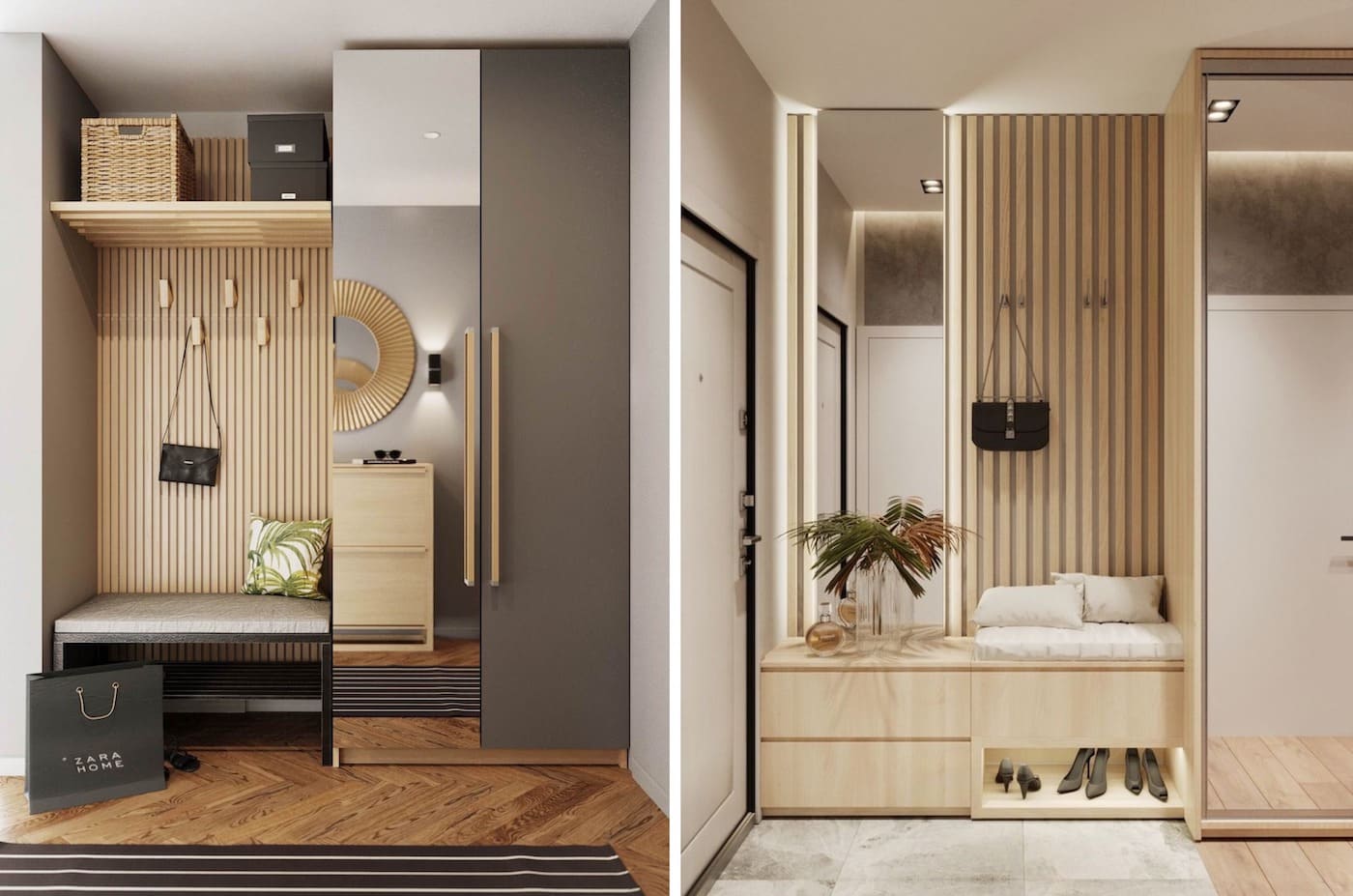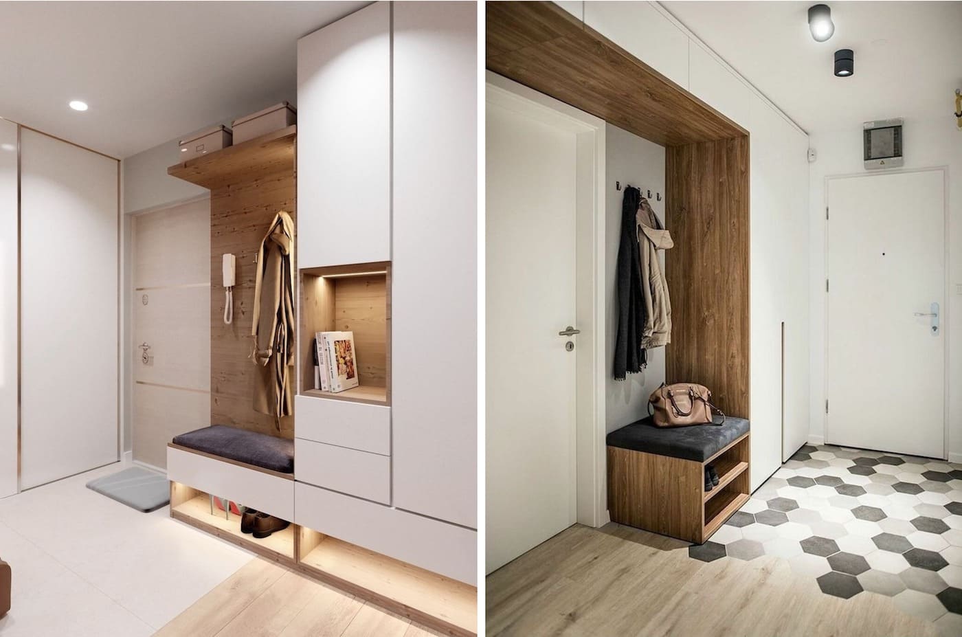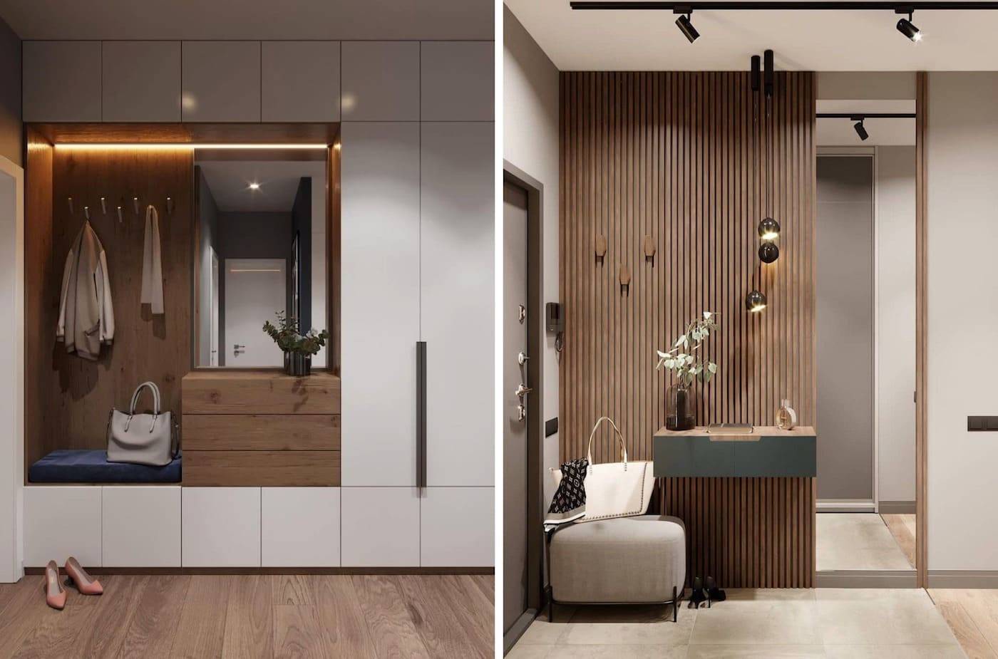 Важно, чтобы они получились стильными и комфортными одновременно, а также имели достаточно места для размещения верхней одежды и обуви. Чтобы совместить все требования в небольшом помещении, дизайнеры применяют особенные хитрости и методы