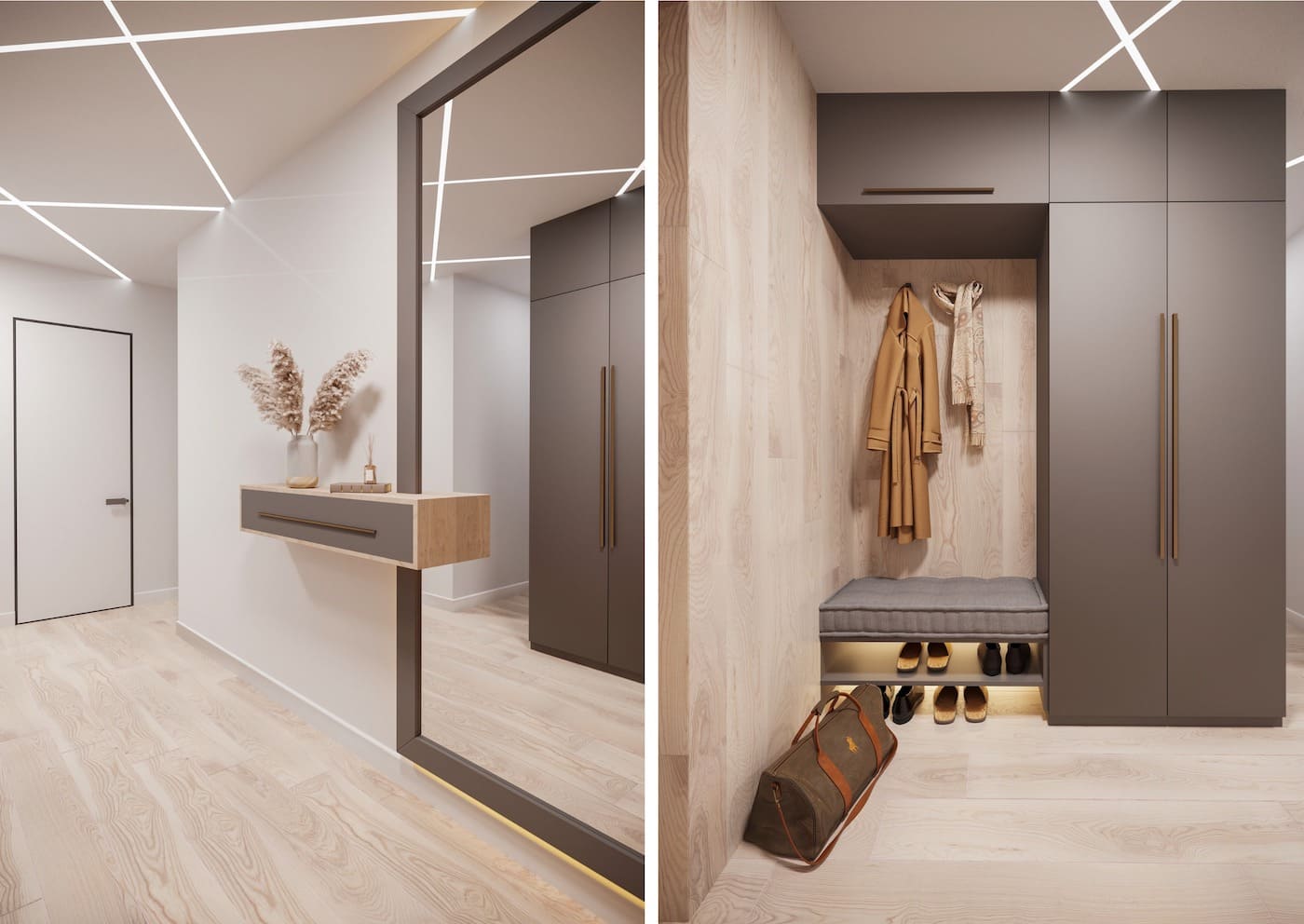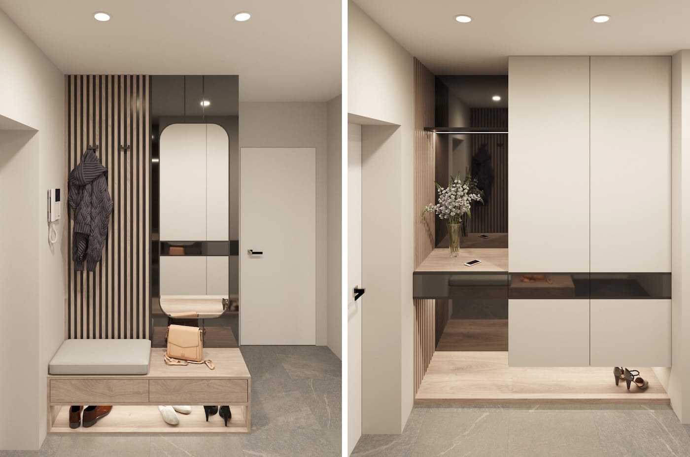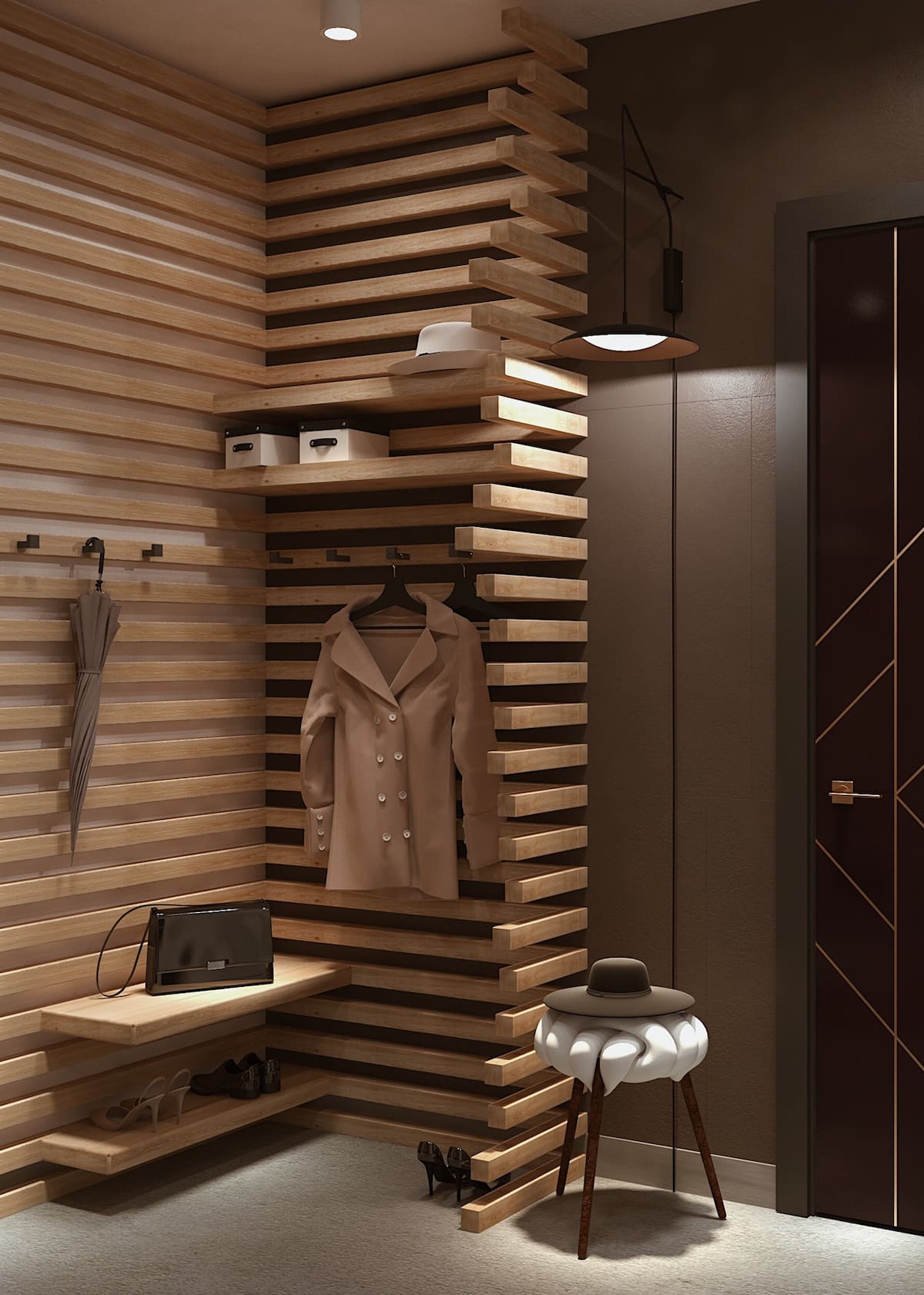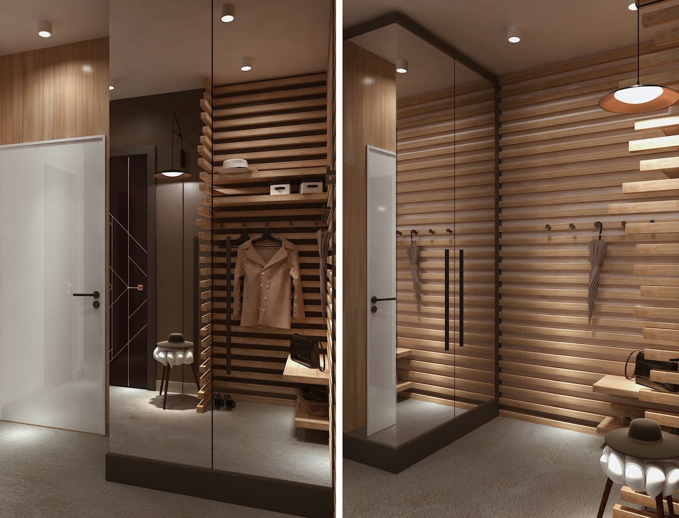 Важно, чтобы они получились стильными и комфортными одновременно, а также имели достаточно места для размещения верхней одежды и обуви. Чтобы совместить все требования в небольшом помещении, дизайнеры применяют особенные хитрости и методы