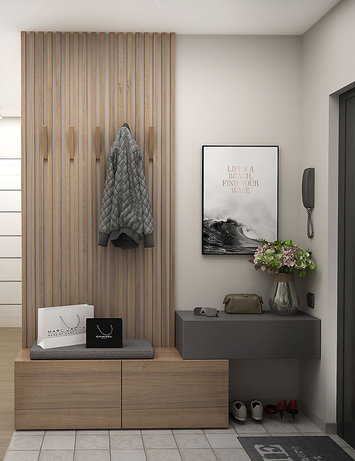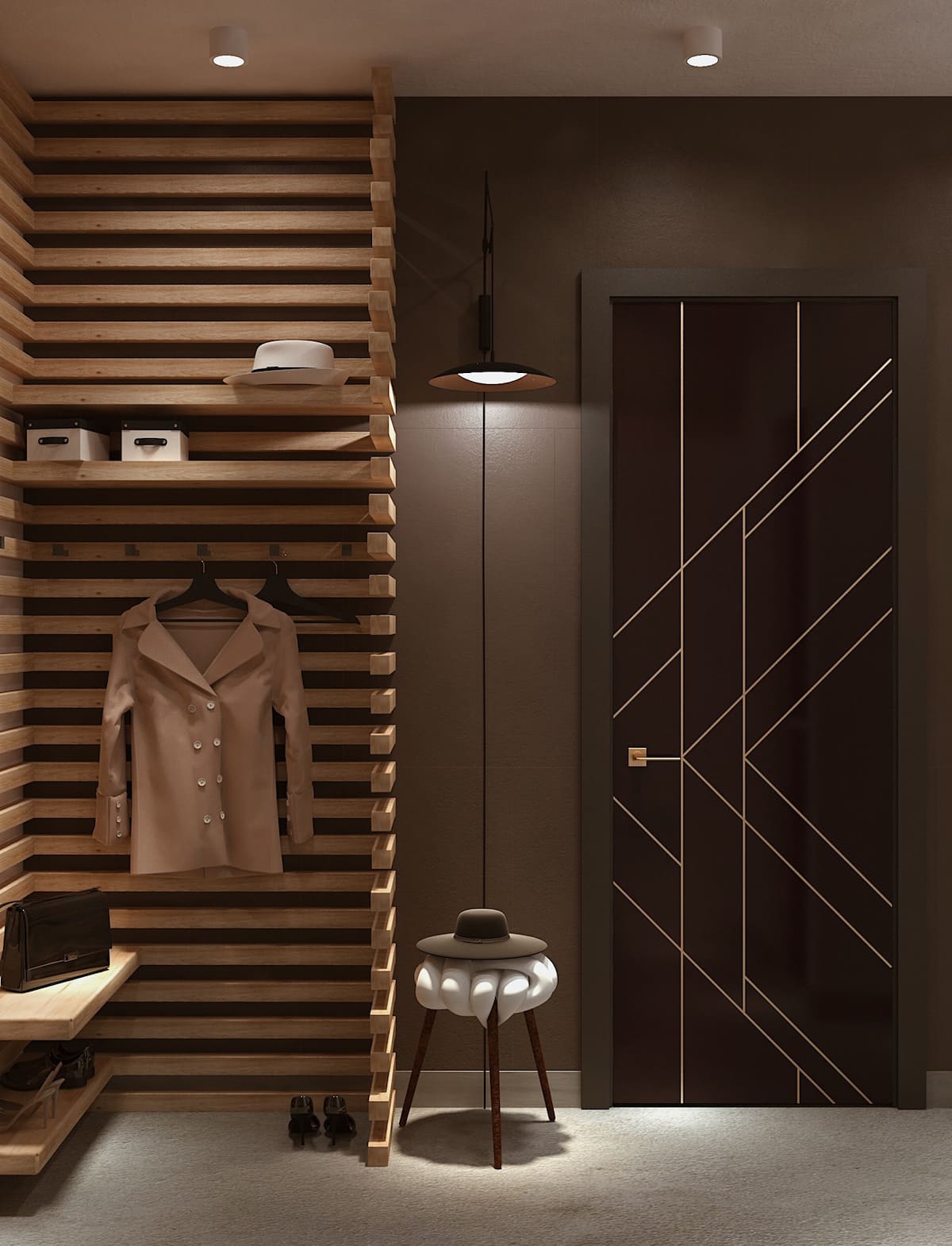 Оригинальный и не стандартный подход дизайнера к интерьеру прихожей.