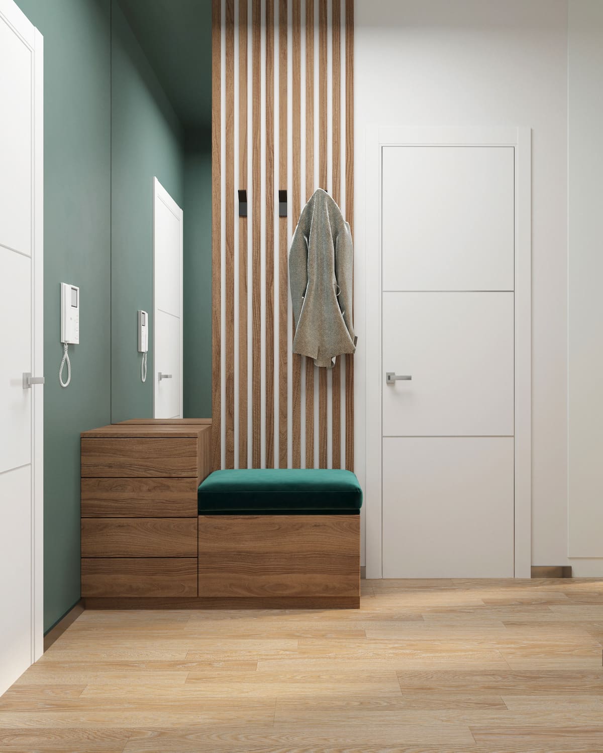 Комбинируйте и сочетайте контрастные цвета, разделяйте зоны прихожей обоями или разной окраской стен.