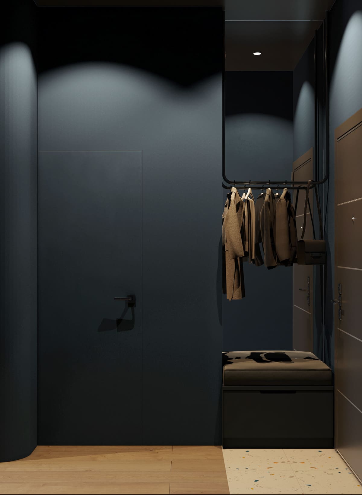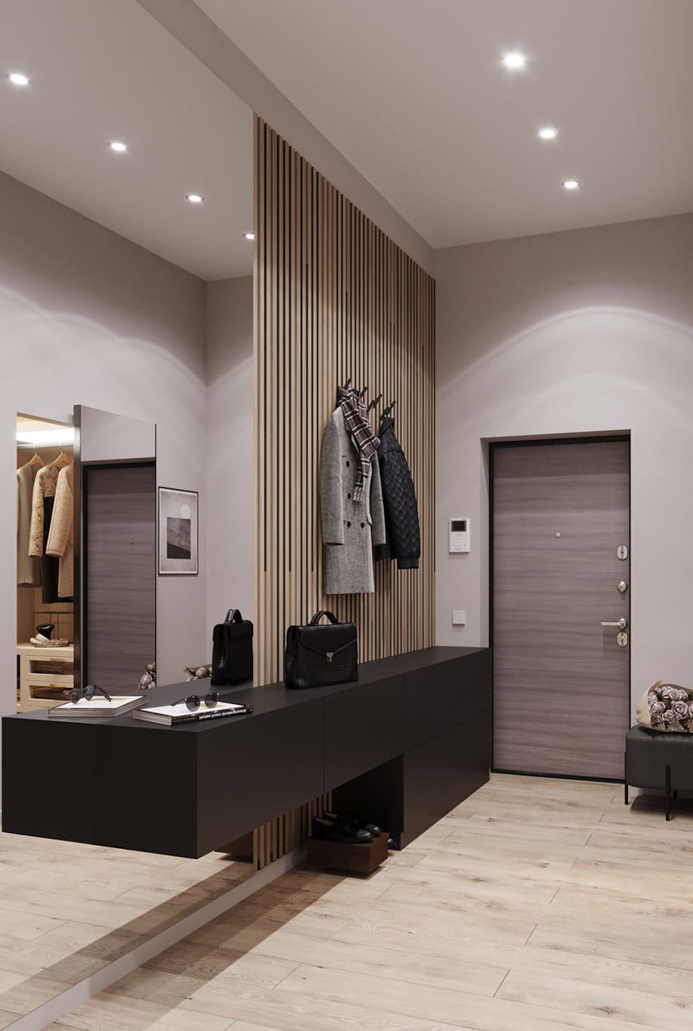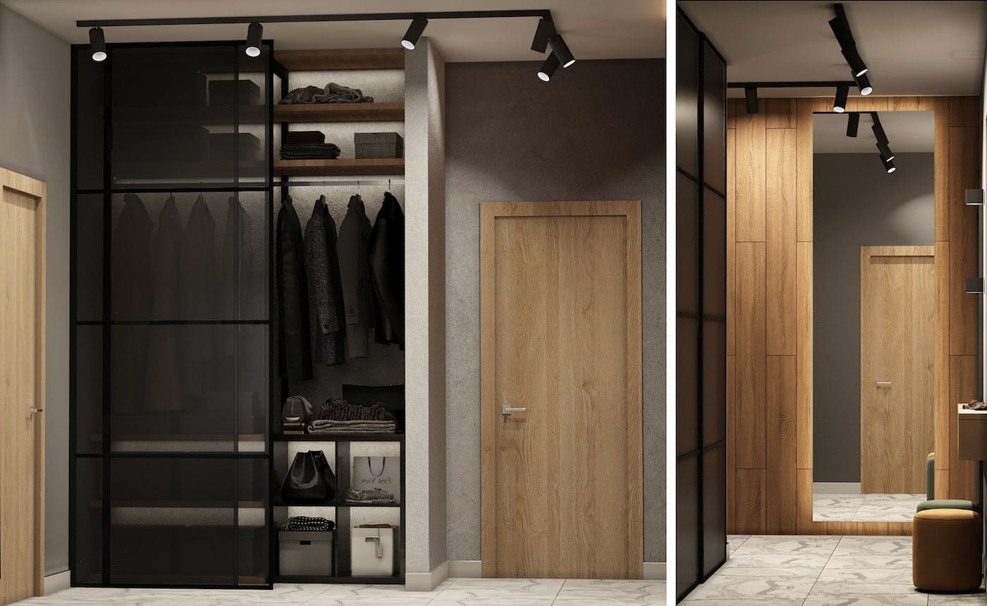 Как можно визуально облегчить прихожую и сохранить количество мест для одежды?
