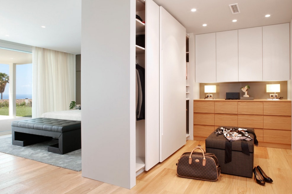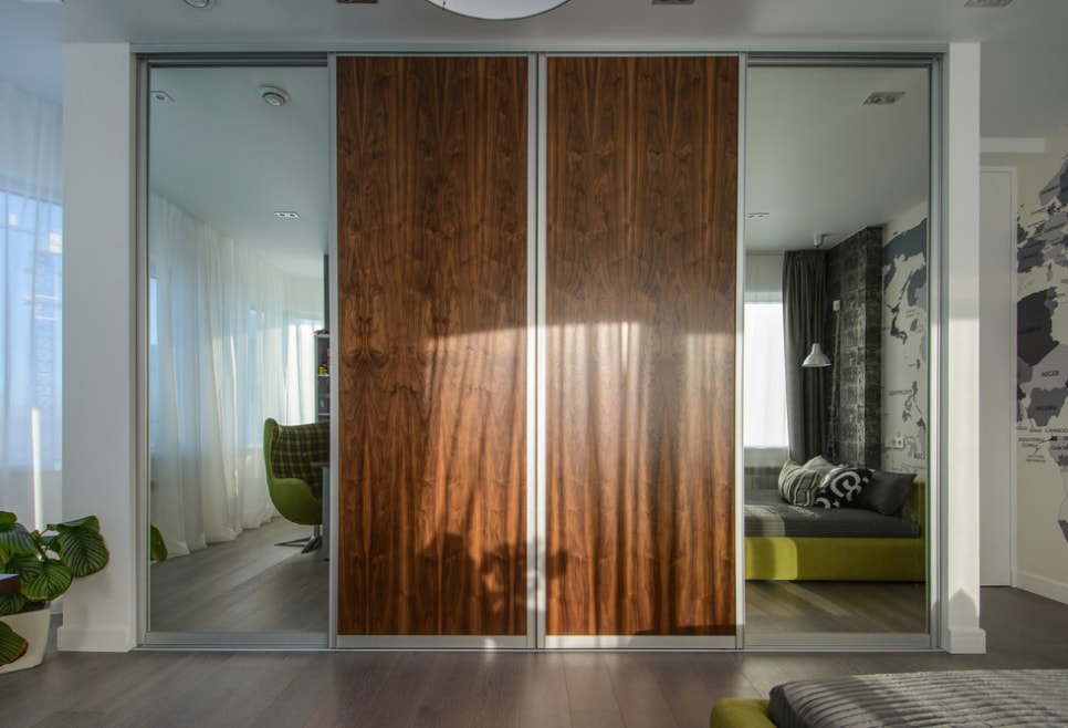 - Установка мебели крупных размеров. После удаления перегородки появляется возможность разместить встроенный шкаф или даже расположить гардеробную. В результате в обеих комнатах появится больше свободного пространства, которое раньше было занято двумя отдельными предметами мебели.