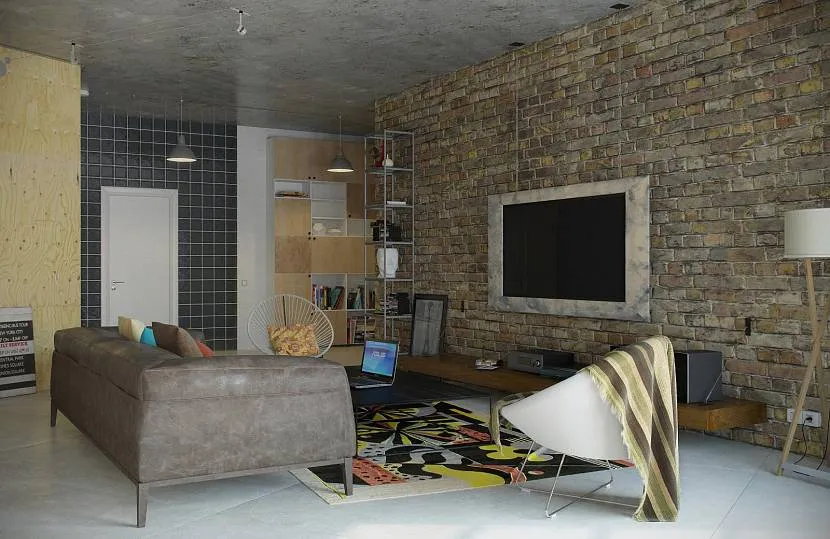 Интерьер в стиле лофтИсточник vplate.ru