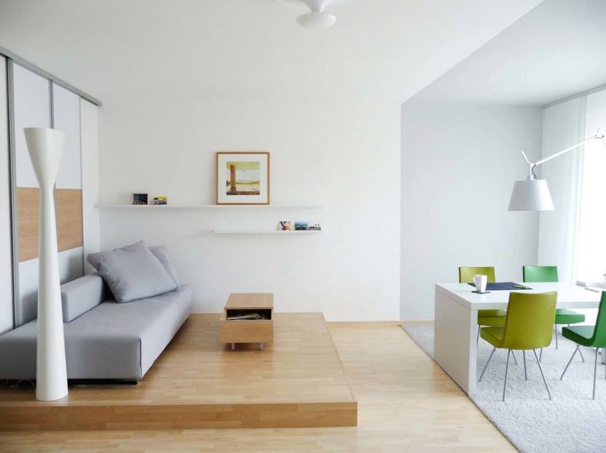 То есть, необходимо предусмотреть незаметный переход, который сделает помещение единым целым, но при этом сохранит особенности каждой зоны. Этого можно добиться с помощью следующих способов: